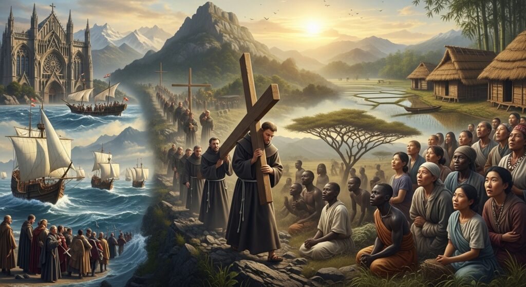 Con el paso de los siglos, el cristianismo cruzó fronteras y culturas. Monjes, misioneros y peregrinos llevaron la fe hasta los confines del mundo, fundando comunidades, escuelas y templos. Desde las montañas de Europa hasta los desiertos de África y las selvas de América, el mensaje de Cristo se hizo universal. La historia de esta expansión es la historia de la esperanza que viaja y transforma.