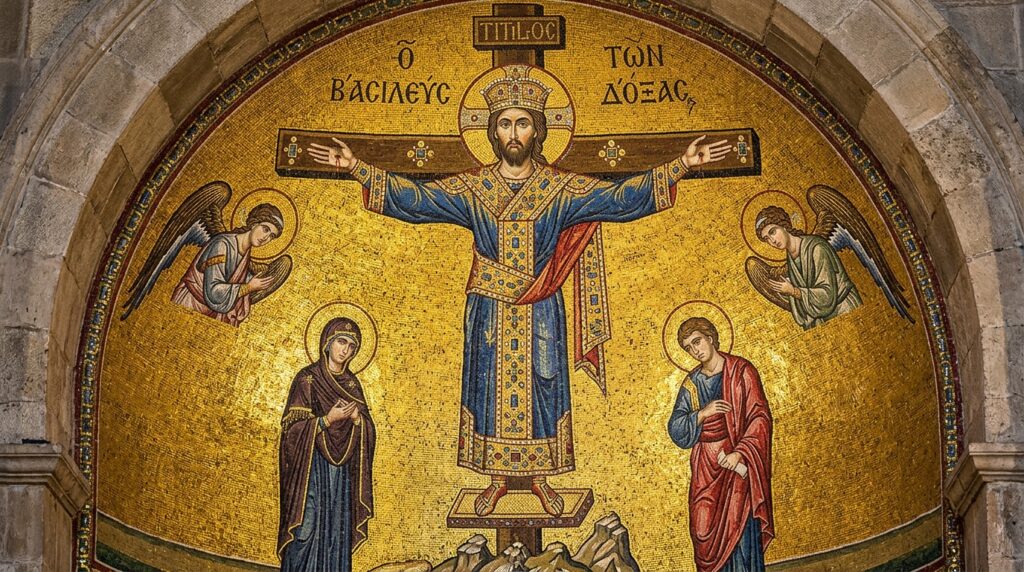 - Significado: No se busca mostrar el dolor físico, sino la victoria sobre la muerte. Cristo está en la cruz, pero no parece «sufrir» en ella; es el Rey del Universo que reina desde el madero. Esta iconografía es común en el arte bizantino y en el románico temprano.
