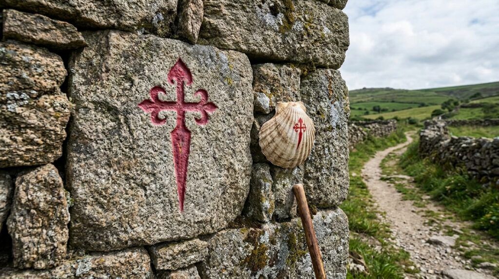 Esta cruz es el símbolo que guía a los millones de peregrinos que recorren el Camino hacia la tumba del Apóstol. Representa la perseverancia y el sacrificio del caminante. Teológicamente, nos recuerda que la fe no es estática, sino un camino (una milicia espiritual) donde la cruz sirve tanto de apoyo como de defensa.