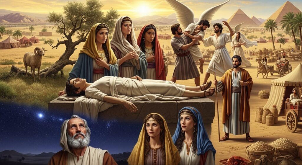 La historia del pueblo de Israel se consolida con los patriarcas: Abraham, llamado a dejar su tierra y convertirse en padre de multitudes; Isaac, el hijo de la promesa; Jacob, que luchó con Dios y fue transformado en Israel; y José, que a través de pruebas y sufrimientos se convirtió en salvador de su familia en Egipto. A su lado también están las matriarcas: Sara, Rebeca, Raquel y Lea, mujeres que jugaron un papel fundamental en la continuidad del pueblo elegido.