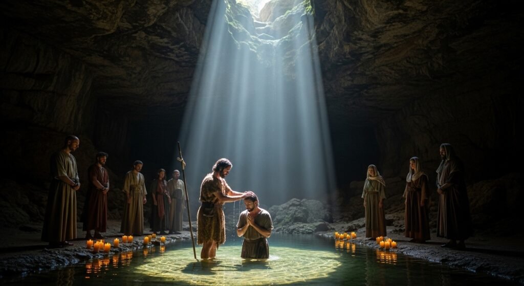 El bautismo de Juan no era un concepto enteramente nuevo. Los judíos ya practicaban los baños rituales de purificación (mikvaot). Sin embargo, el bautismo de Juan era un rito singular, un bautismo de arrepentimiento para el perdón de los pecados (Marcos 1:4). El acto de sumergirse en la cueva, o en el Jordán, no era solo una purificación física, sino un símbolo de un cambio de vida y de preparación para la venida del Mesías. La cueva, si se utilizó, habría sido un espacio íntimo y sagrado para este rito.
