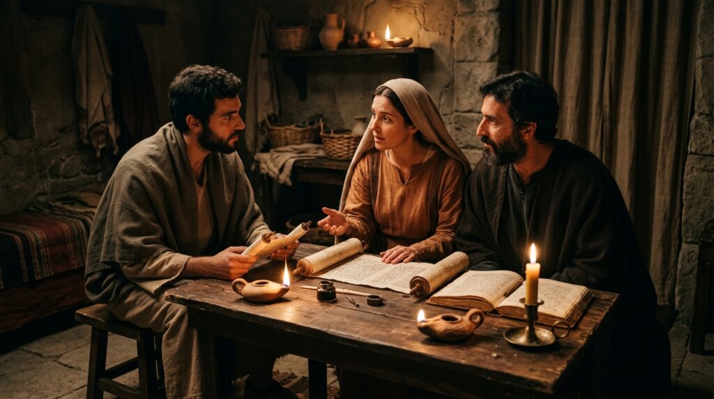 El texto de Hechos 18 nos dice que Pablo se unió a ellos «porque eran del mismo oficio». Esta conexión profesional —la fabricación de tiendas o skenopoioi— fue el puente para una amistad espiritual profunda. Durante un año y medio, compartieron el techo, el taller y la mesa. Podemos imaginar las largas jornadas de trabajo manual donde, entre lonas y cueros, discutían las profecías del Antiguo Testamento y las enseñanzas de Jesús.