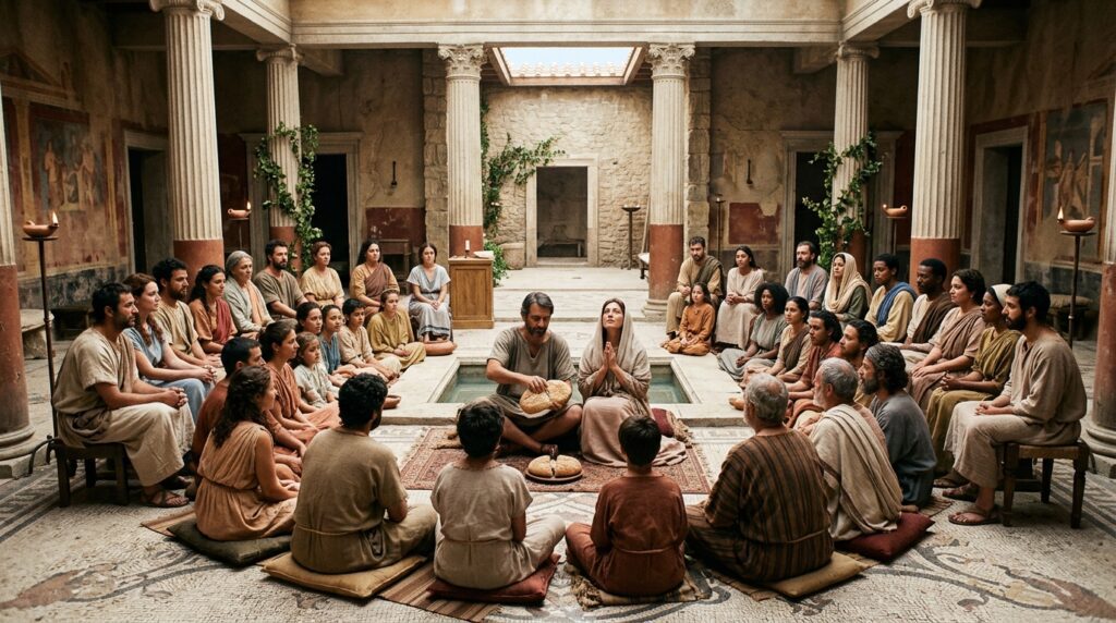 En el siglo I, no existían edificios eclesiásticos como los conocemos hoy. La iglesia era una comunidad de personas, no un lugar. Priscila y Aquila fueron pioneros en el concepto de la ecclesia domestica o iglesia en casa.