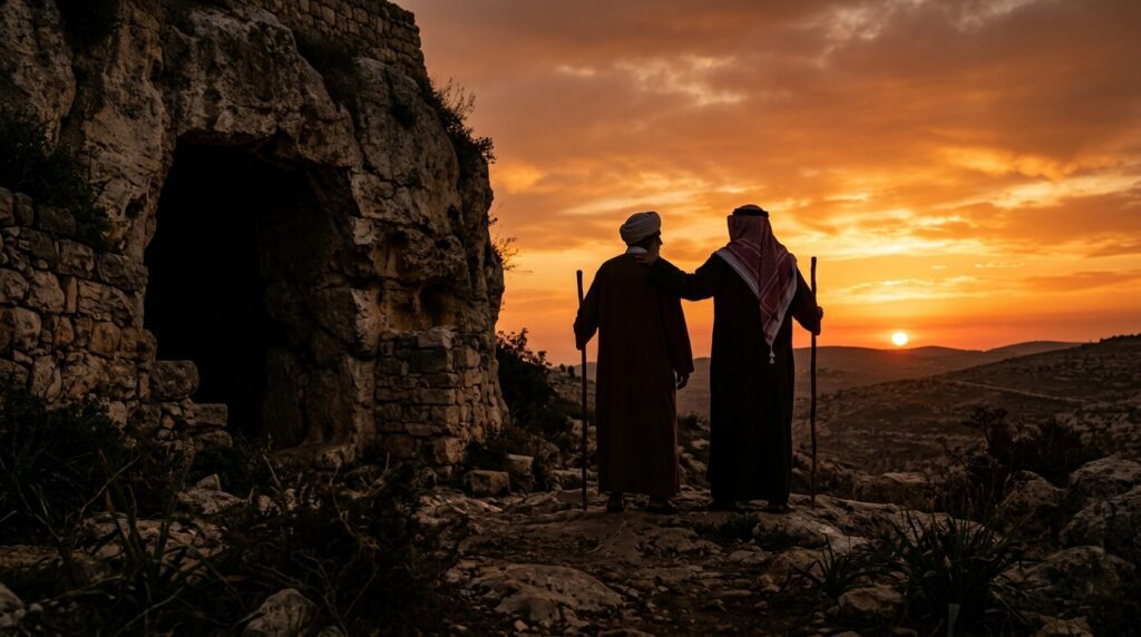 Un detalle sutil pero poderoso en el texto bíblico ocurre tras la muerte de Abraham. El Génesis registra que «Isaac e Ismael, sus hijos, lo sepultaron en la cueva de Macpela» (Génesis 25:9). Este momento implica una reunión. A pesar de la expulsión, de las lágrimas de Agar y de la amargura del pasado, los hijos de las dos mujeres se unen para honrar a su padre.