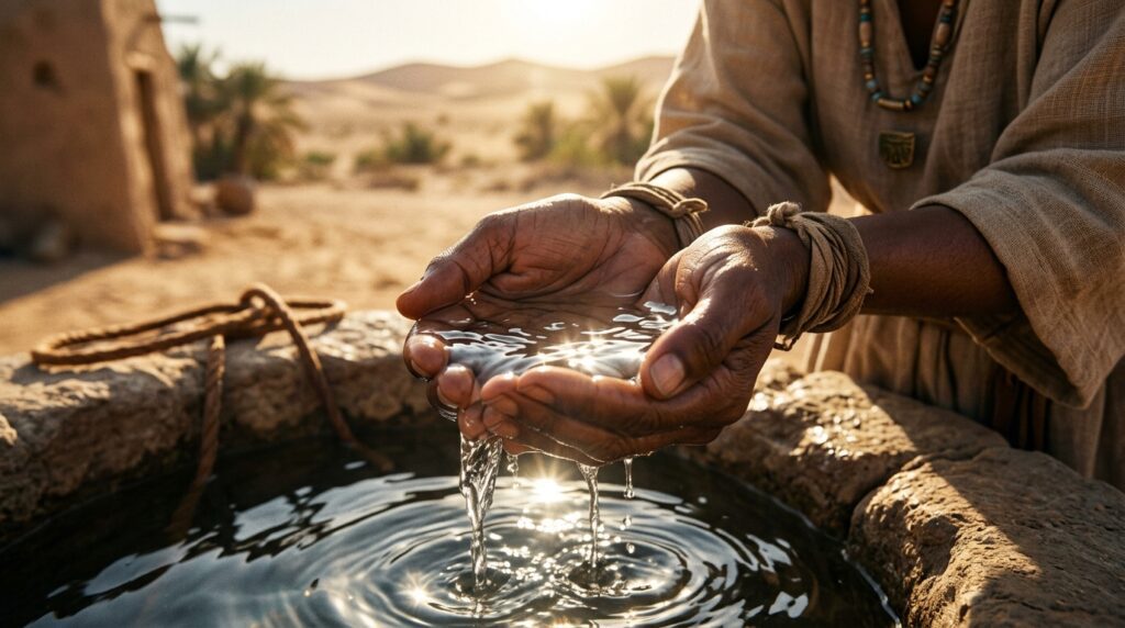 La intervención divina no es solo espiritual, sino práctica. «Entonces Dios le abrió los ojos, y vio un pozo de agua». El pozo siempre estuvo allí, pero el velo del desespero le impedía verlo. Agar llena el odre y da de beber al muchacho. Este momento simboliza la provisión divina en medio de la escasez absoluta.